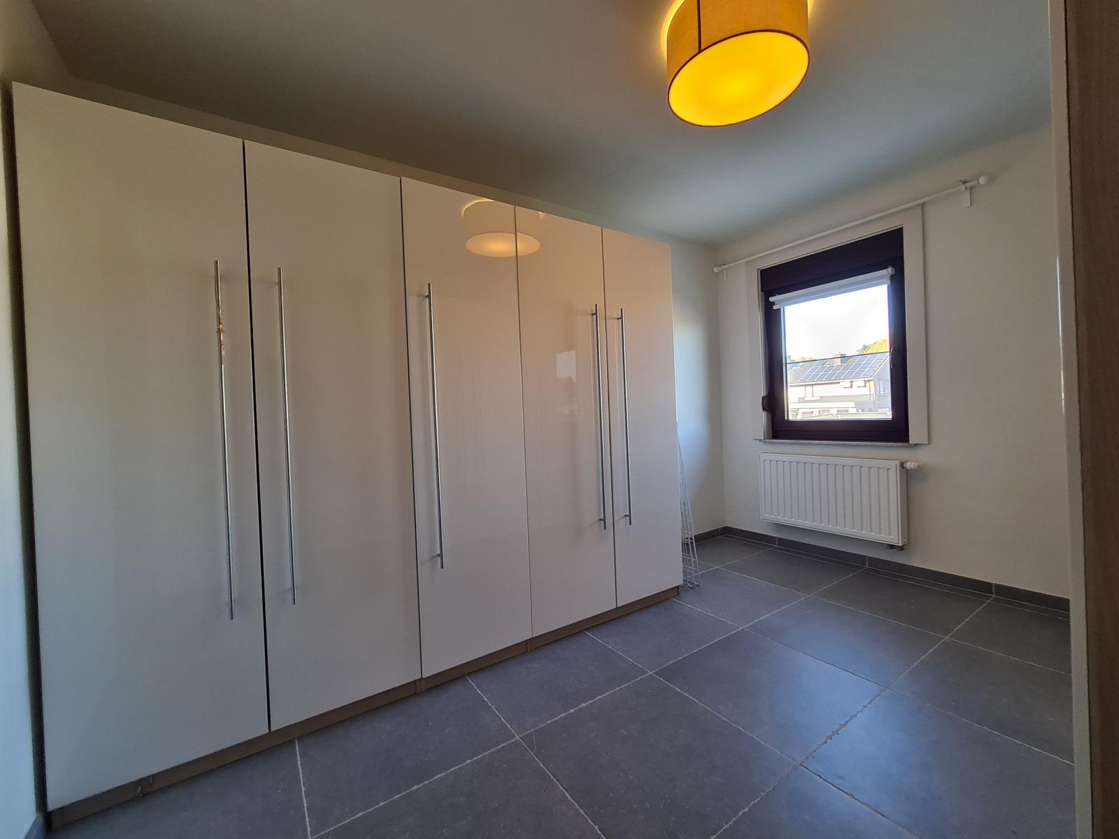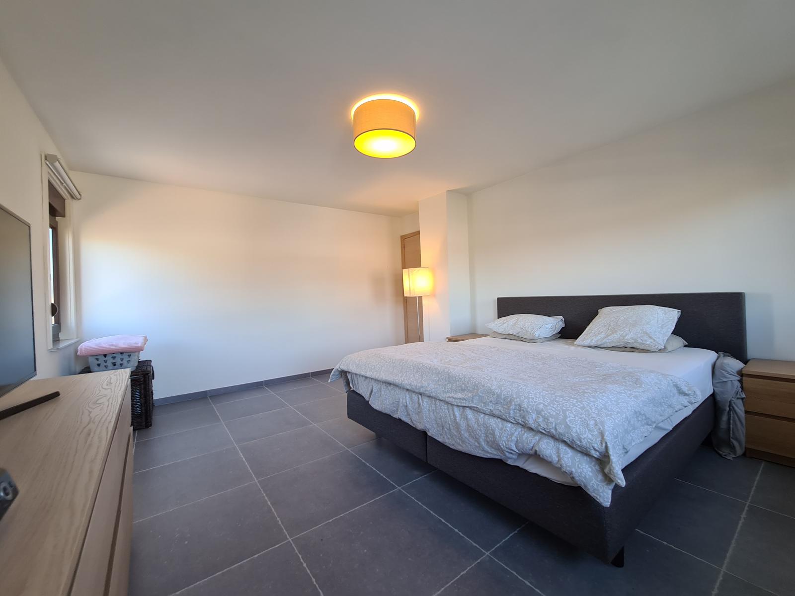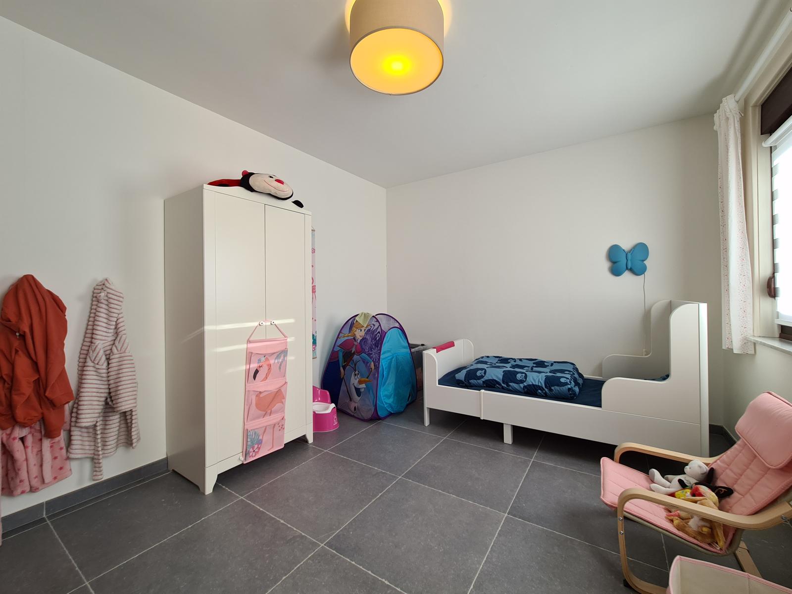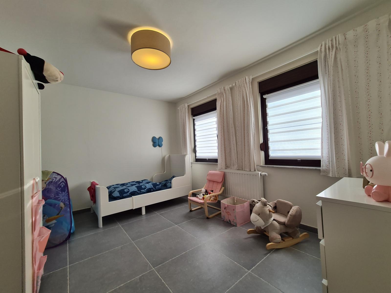 We komen de woning binnen langs de ruime inkomhal die toegang geeft tot de keuken en de woonkamer. De woonkamer is voorzien van grote raampartijen waardoor er veel natuurlijk licht binnenkomt. De keuken is volledig ingericht en voorzien van alle comfort.