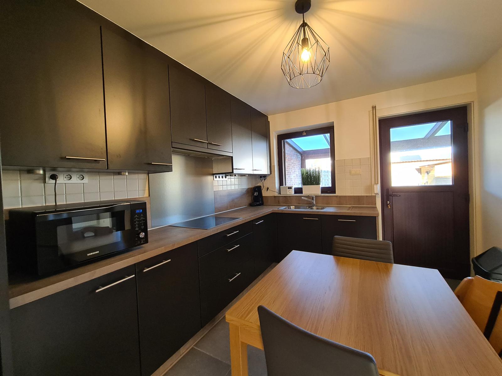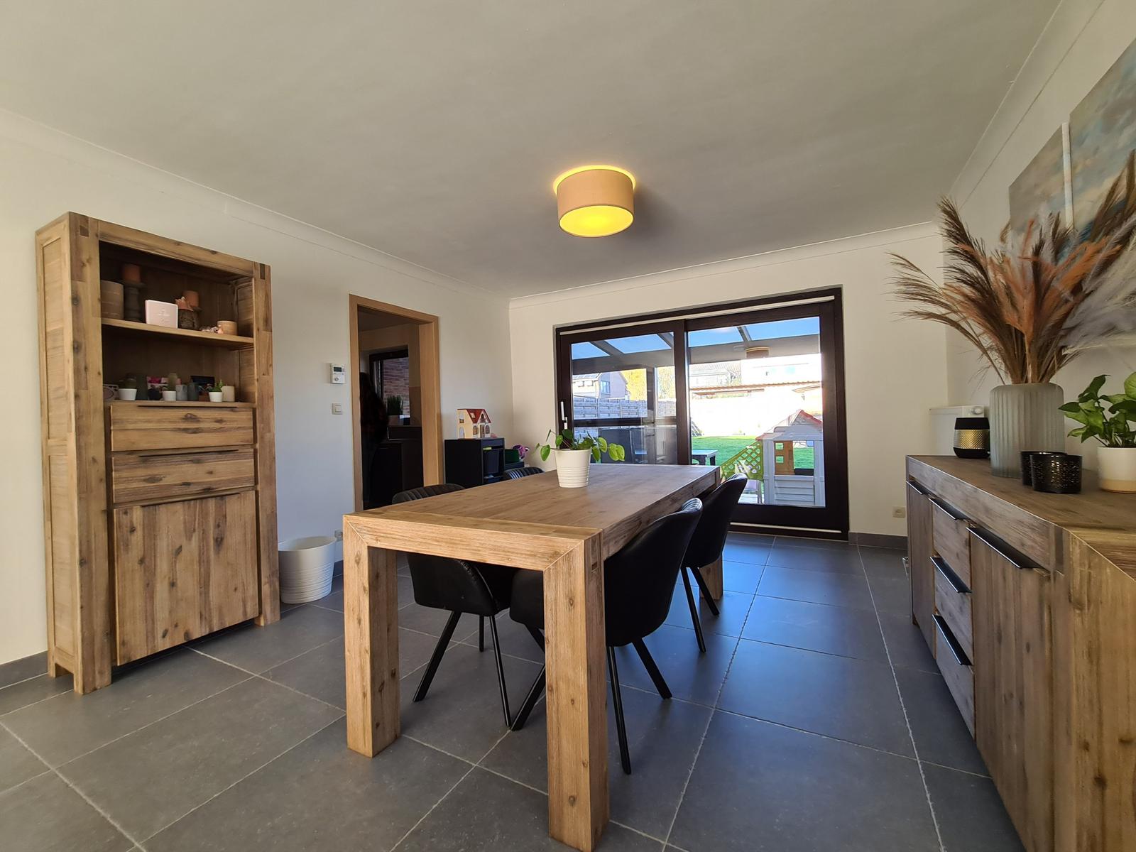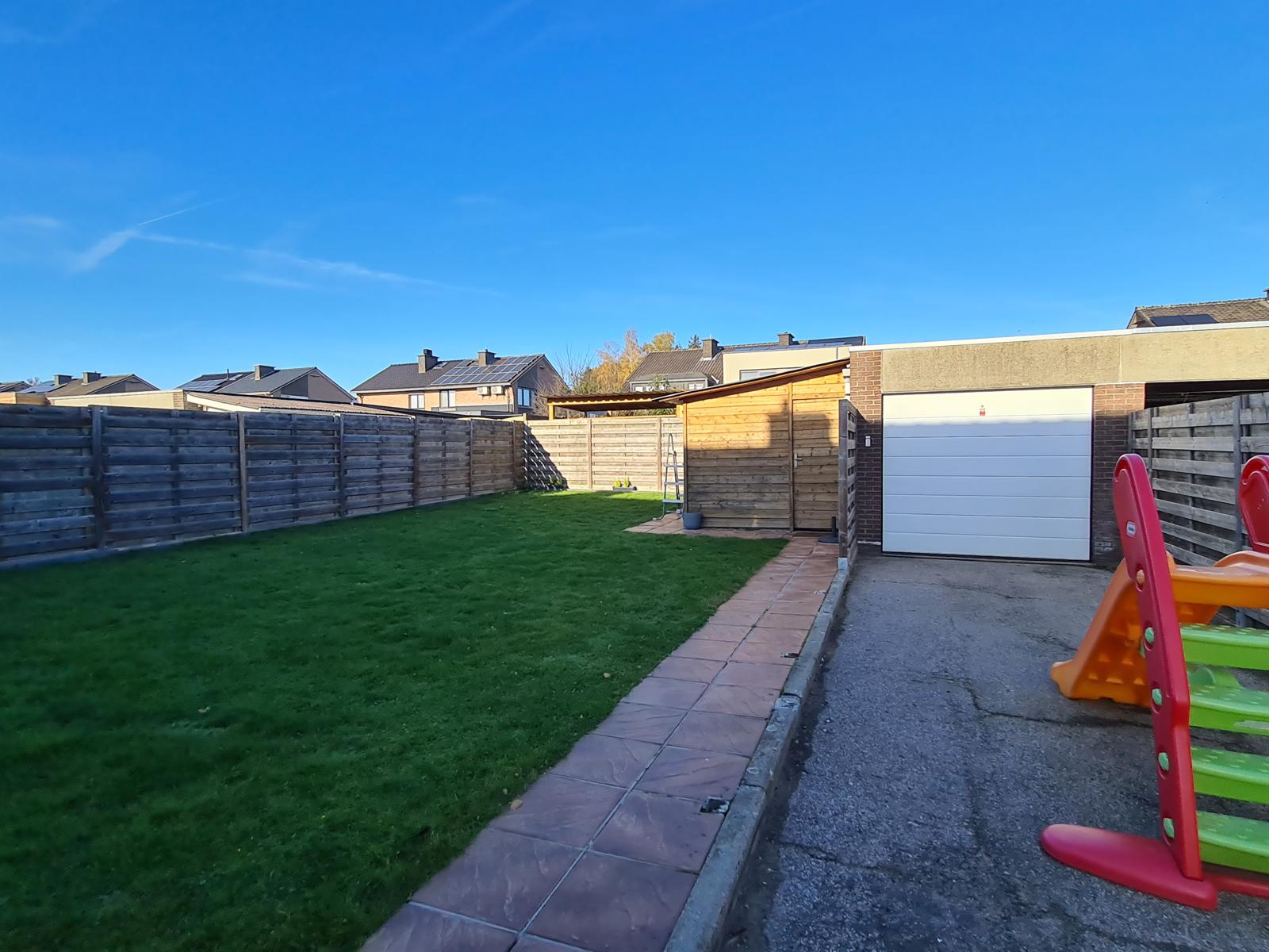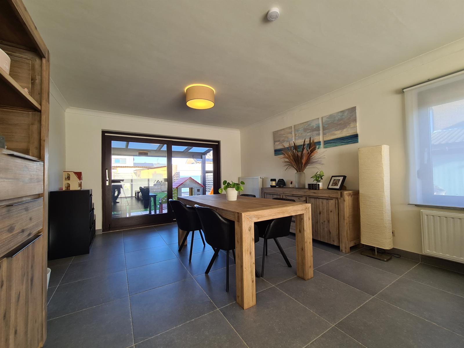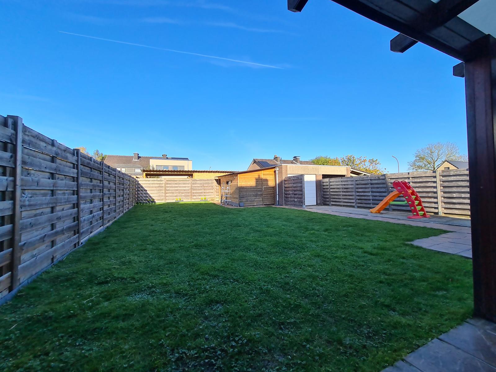 Zowel vanuit de keuken als vanuit de woonkamer is er toegang tot het overdekt terras en de onderhoudsvriendelijke tuin.